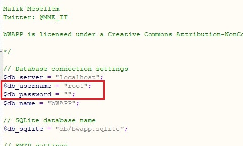 Then, navigate to “C:/Xampp/htdoc/bwapp/admin” folder to change the default username and password for the database.