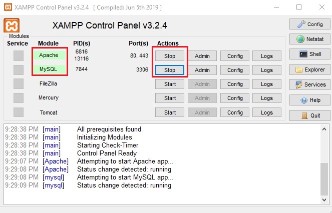 Once the installation is done, we need to start the service of Mysql and Apache service in Xampp server.