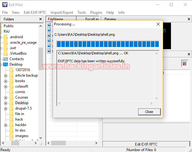 Now open exif pilot and insert any image to hide malicious comment inside it. From the screenshot, you can see I have chosen a shell.png image and then click on EDIT EXIF/IPTC.