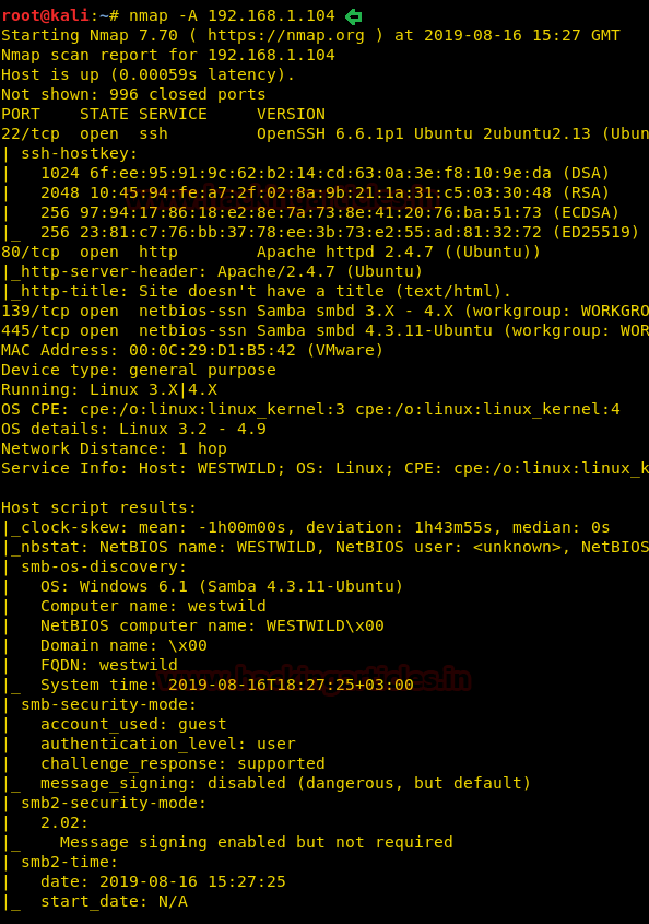 Then we used Nmap for port enumeration and found port 22, 80,139 and 445 are open.
