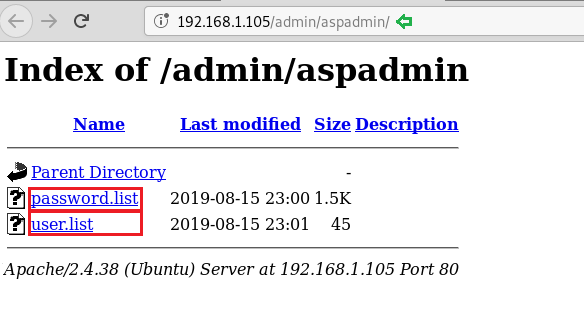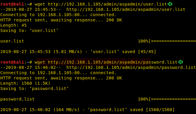 wget http://192.168.1.105/admin/aspadmin/user.list wget http://192.168.1.105/admin/aspadmin/password.list