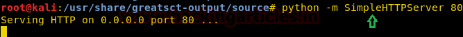 Now, firstly, start the python’s server in /usr/share/greatsct-output by typing: