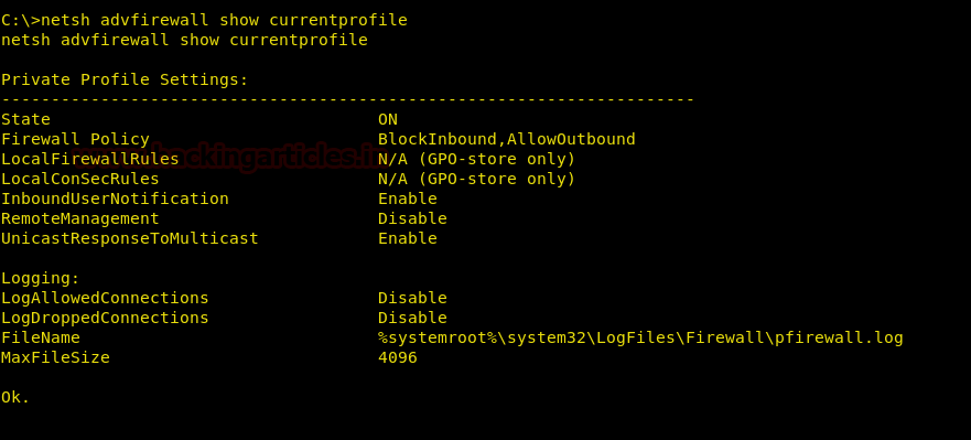 netsh advfirewall show currentprofile