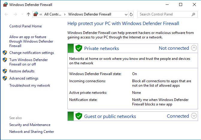 Firewall is functional on two rules which are always encircled by Inbound and outbound rules: