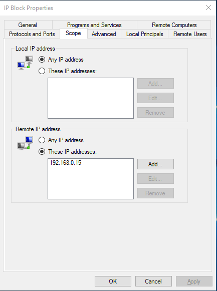 And we now see the properties of the IP Block rule we can see that the IP: 192.168.0.15 is Allowed :