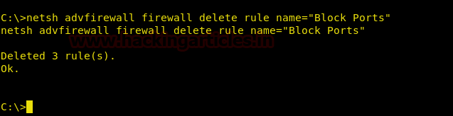 netsh advfirewall firewall delete rule name="Block Ports"