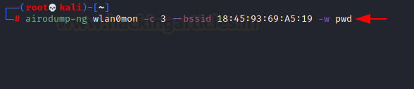 airodump-ng wlan0mon -c 3 --bssid 18:X:X:X:X:X -w pwd