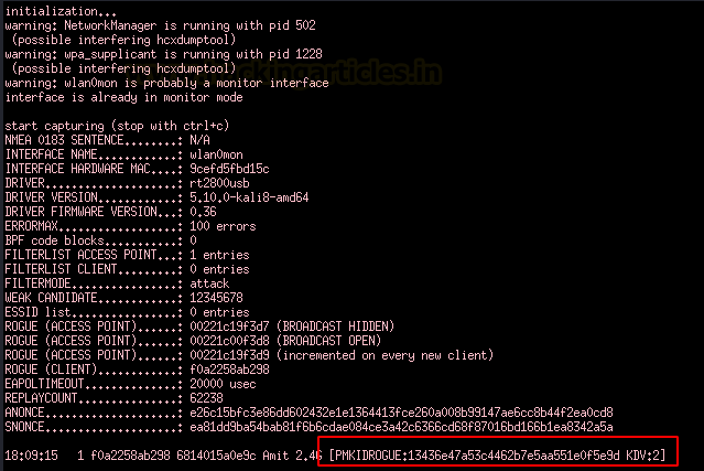 Now, I’ll capture the PMKID and save the output in a file called raj.