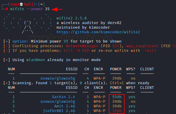 Access Points that are far away often don’t behave well while being attacked. There’s a lot of noise, attenuated signals and obviously packet drops while communicating. So to be safe we’ll set a power threshold so that we can only scan WiFis closer to us and whose power is enough to be communicated with without any errors like in WiFis that are attenuated.