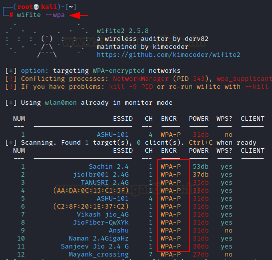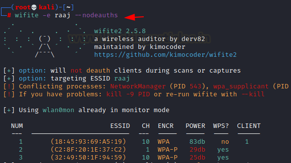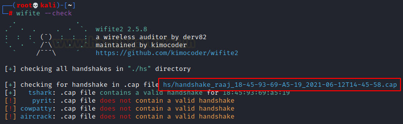 We have talked about handshakes in detail in our previous article here. Let’s see how we can capture handshakes using wifite.