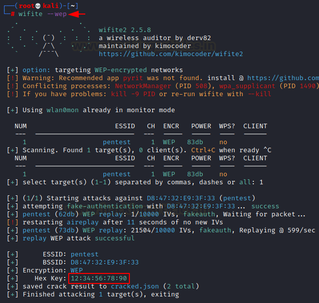 Wifite is a powerful wireless auditing tool developed by Derv82 and maintained by kimocoder, making it a popular choice for Wireless Penetration Testing Wifite workflows. You can find the original repository here. In the latest Kali Linux, it comes pre-installed. It’s a great alternative to the more tedious to use wireless auditing tools and provides simple CLI to interact and perform wireless attacks. It has great features like 5GHz support, Pixie Dust attack, WPA/WPA2 handshake capture attack and PMKID attack as well.