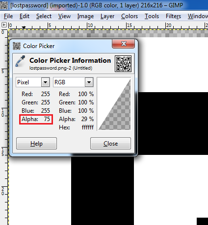The clue said look deeper, so we tried to zoom the image and found that there are some different pixels on the top left of the image. To read that we used the color-picker tool in the GIMP editor. To do this, we used Gimp Editor tool and used the option Open in Layers in the File menu, after that we deselected all the layers except the alpha layer of the image, then used the Color-Picker tool from the Tools menu to find the alpha values of the pixels